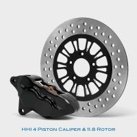 HHI complete kit includes our two-piece floating cog style rotor and brake caliper. The kit is available in sizes to fit most any application and includes our 4 piston brake caliper. Available in chrome or black anodized finish. The combo kit is offered at a special price for great value.