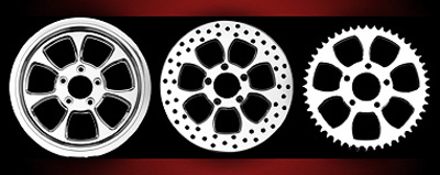 The Phoenix looks amazing on just about any style of bike with its 7 flowing spokes. The carefully styled lines gracefully flow into the smooth lip rim used by many Renegade Wheels. Direct bolt-on, matching air cleaner, sprotor and pulley are available. All HHI/Renegade Custom Wheels come in 16" to 32" sizes with matching True Floating Cog Drive Brake Rotors in 11.5, 11.8, 13, & 18-inch sizes.